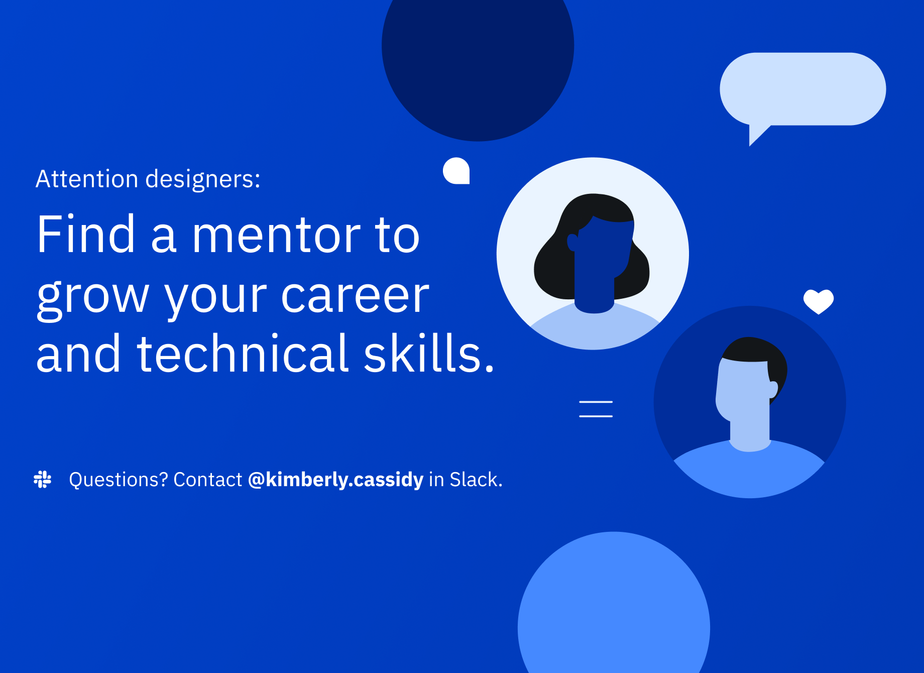 To build a pipeline of experienced designers and promote design excellence across CIO and IBM Design Practices, I implemented a customized mentoring program. As the program gained popularity, we expanded its scope to include teaching design skills to non-design employees.